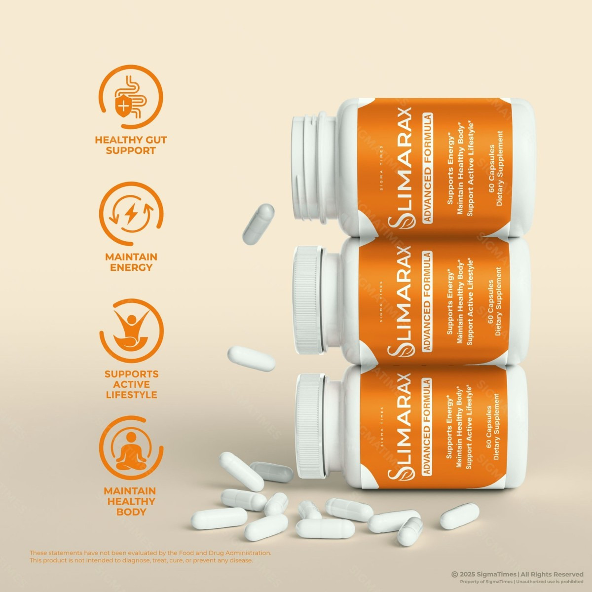 Slimarax is not a magic pill but works best when combined with a healthy diet and exercise.